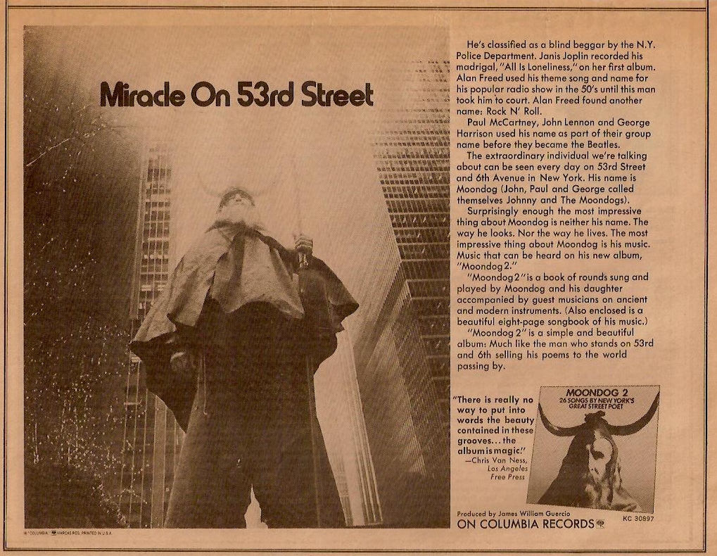 Inconnu en 1971 Publié le 17 décembre 201017 décembre 2010 par Amaury Cornut Voici un article publié dans un journal qui m’est encore inconnu. Il annonce la sortie de l’album Moondog 2 en 1971. Partager : Partager sur Facebook(ouvre dans une nouvelle fenêtre) Facebook J’aime chargement… Similaire