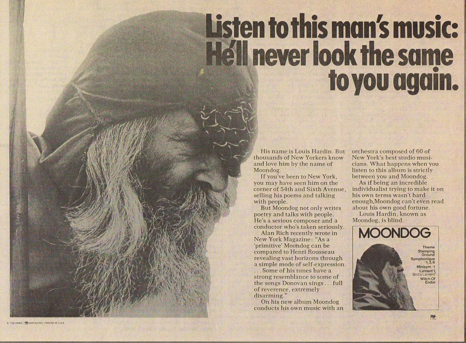 Texte promotionel édité par CBS en 1969. Publié le 17 Mai 2011 par Amaury Cornut Il s’agit d’un document édité par la firme Columbia et destiné à promouvoir le premier des deux albums de Moondog sorti chez eux, à savoir celui de 1969. Partager : Cliquez pour partager sur Facebook(ouvre dans une nouvelle fenêtre) Facebook J’aime chargement… Similaire